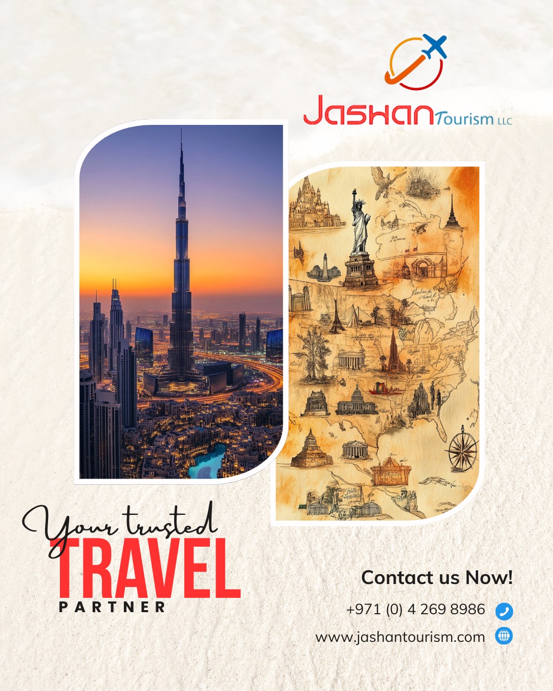 Jashan Tourism is a trusted Dubai-based travel agency and tour operator specializing in comprehensive travel services for the UAE and international destinations. Established in 2015, the company has built a strong reputation for efficiency, professionalism, and exceptional customer service.
